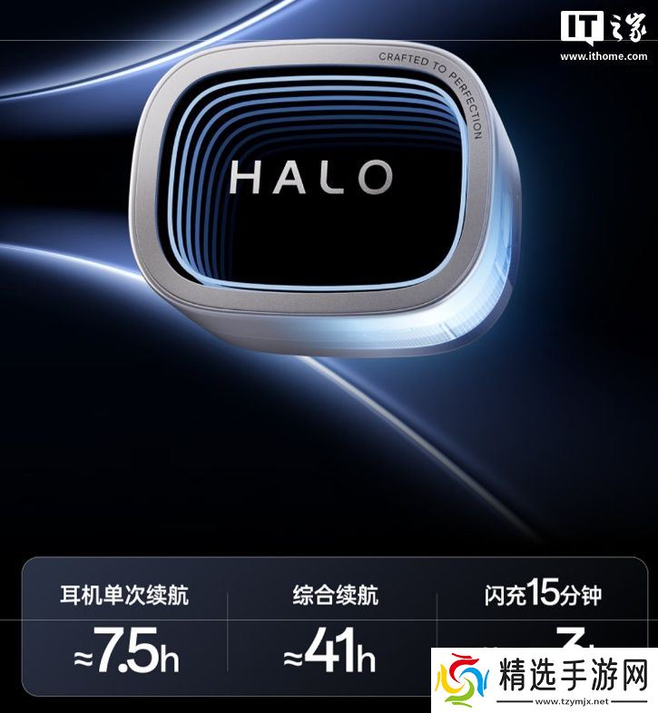 该耳机标称单耳续航 7.5 小时,搭配充电盒的总续航 41 小时;支持蓝牙 6.0、AI 通话降噪、IP55 防尘防水、定位防丢失。