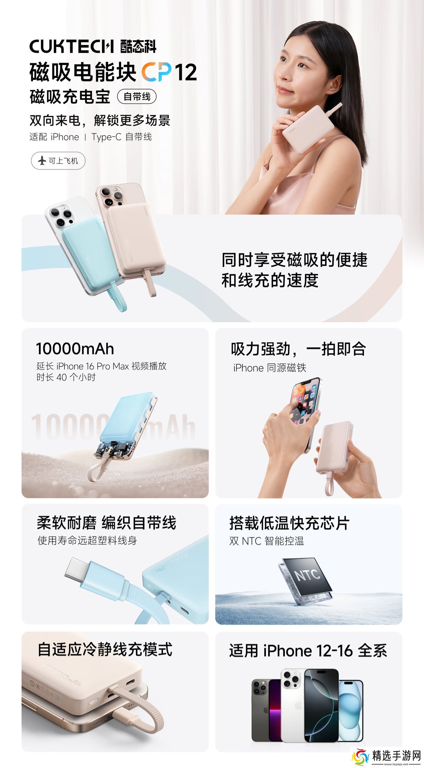 酷态科磁吸电能块 CP12 自带线充电宝去年 10 月发布,官方定价 129 元,首发价 99 元。