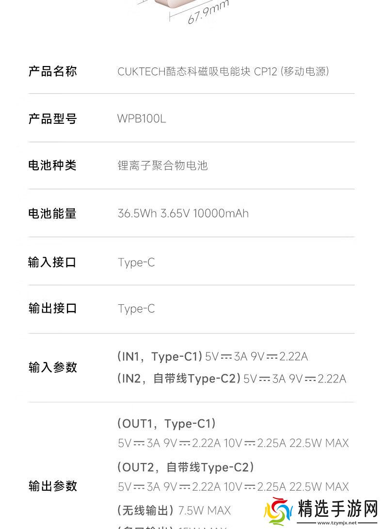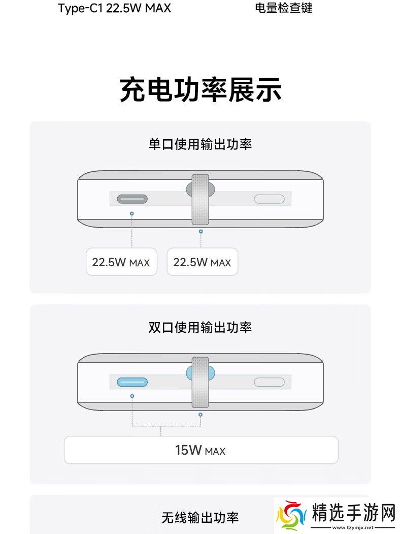 自带线以及 Type-C 口均支持最高输出 22.5W,双口同时输出为 15W,无线输出功率 7.5W。