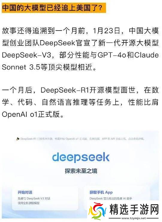 1月27日,杭州见证了DeepSeek的又一次重大亮相。游戏科学创始人冯骥,同时也是热门游戏《黑神话:悟空》的出品人,在公开场合总结了DeepSeek的六大特点:强大、经济、开源、免费、联网、本土。他更断言,DeepSeek或将成为影响国家命运的科技成果。