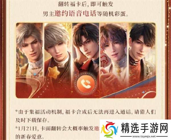 在活动中,玩家可以收集福卡,还能触发男主邀约语音电话等活动彩蛋,体验新春祝福。