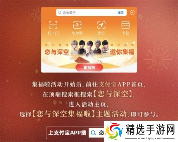 在2025年支付宝集五福活动期间,玩家可以通过参与《恋与深空》主题福卡活动,获得丰富的奖励,包括游戏礼包、男主红包封面、新春祝福语音等内容。接下来小编将带来详细的活动攻略,帮助大家轻松参与并获得奖励。