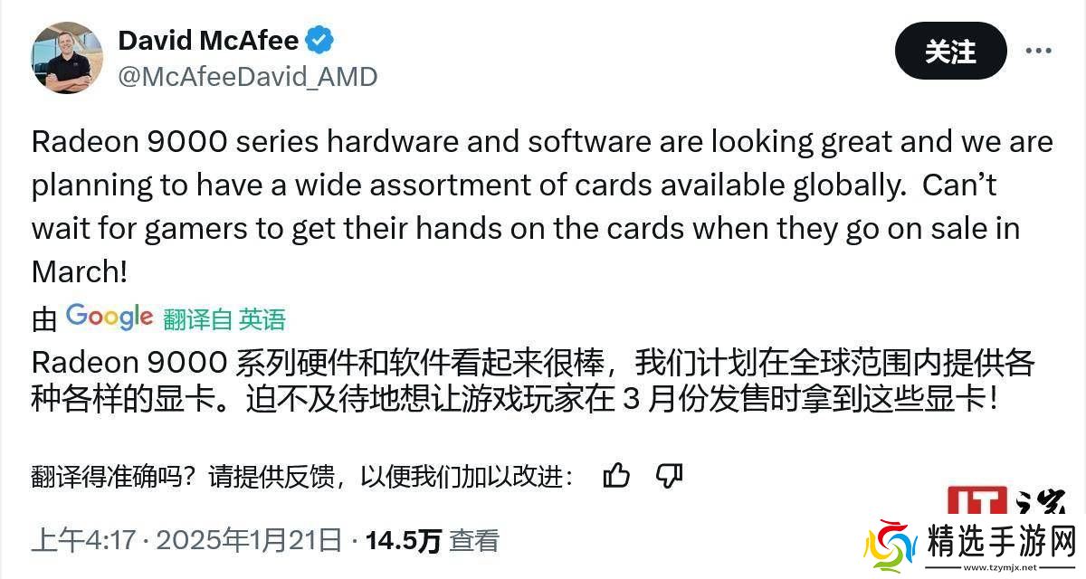 AMD公司副总裁兼客户渠道业务总经理David McAfee此前已公开确认,Radeon RX 9000系列显卡将于三月正式发售。这一消息无疑为游戏玩家和图形处理专业人士带来了更多期待。