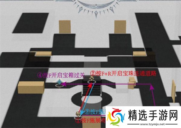 按照箭头路径依次移动,确保每个机关都按正确顺序触发。