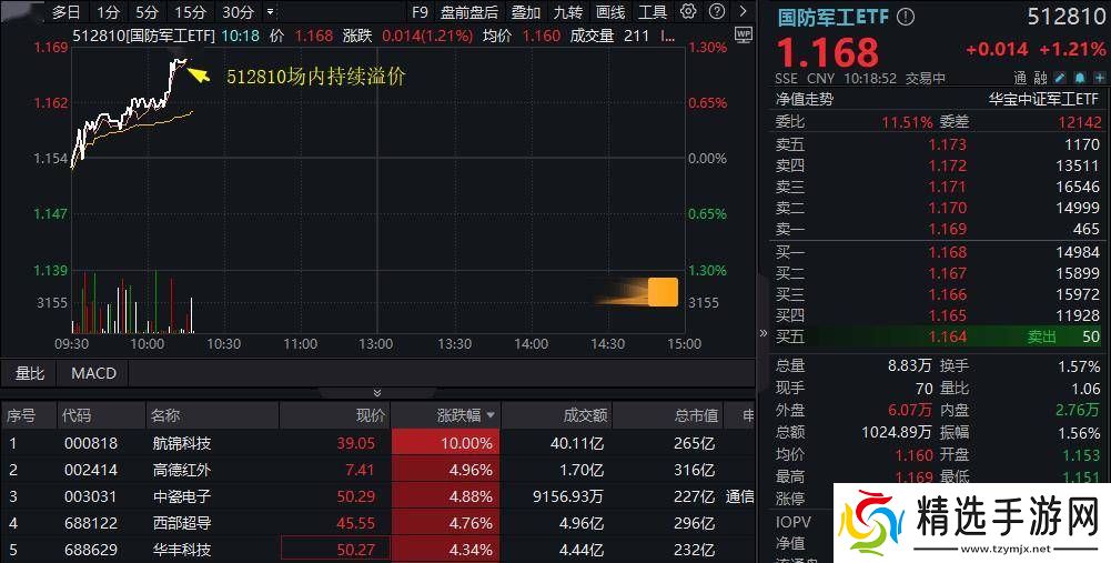 在成份股方面,航锦科技表现尤为抢眼,实现了连续12个交易日中的第9个涨停板。与此同时,高德红外、华丰科技、西部超导、中瓷电子、中简科技等多只股票也紧随其后,大幅上扬。