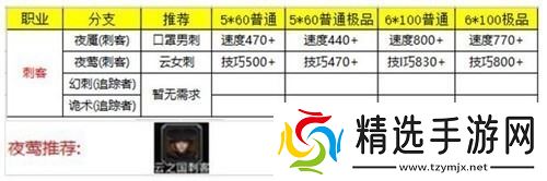 三、潜行者:物理输出No1!拥有极快的攻击速度和较强的Debuff效果。1、虽然生存能力稍弱,但在游戏后期速刷各种地图、副本时绝对是首选!2、目前最佳的转职分支是夜魇和夜莺,能极大节约时间,不推荐其他转职路线。3、转职优先级:潜行者→刺客→影刺客→夜刃→夜魔→夜魇。4、转职第二级:潜行者→刺客→影刺客→夜刃→夜魔→夜莺。