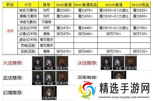 二、法师:游戏中的多面手,进可攻,退可守,通过控制调整战斗节奏。1、元素师分支不单有强力的单体、群体魔法,还有群体回复能力。2、附带整个游戏最重要的属性“技巧”的增强效果,可以提升团队的实力。3、巫医分支则具备了较强的单体输出、控制、回复,使法师成为游戏中的多面手。4、转职优先级:法师→元素师→元素导师→**师→首席法师→传奇法师/岩浆法师/霜寒法师。5、转职第二级:法师→巫医→进阶巫医→巫毒大师→诅咒先知→灵魂贤者。