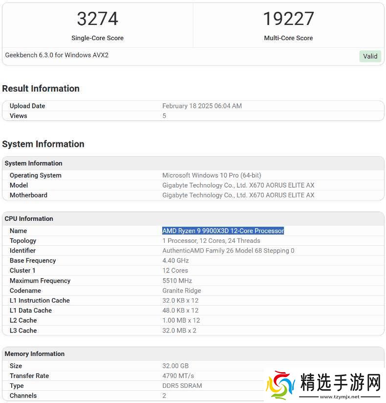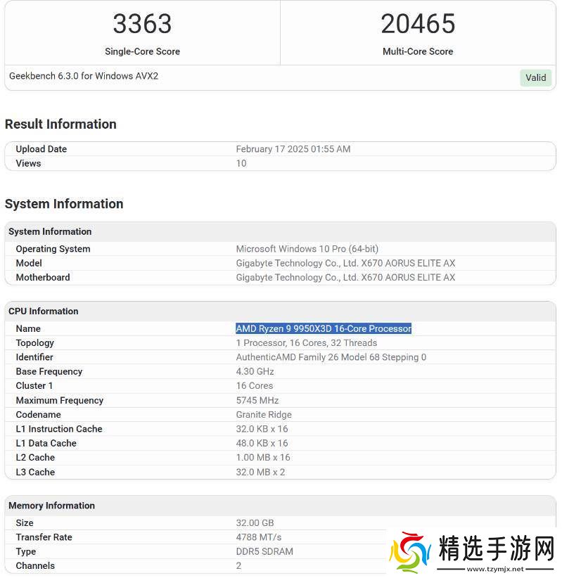 在Geekbench 6.3的测试中,锐龙9 9900X3D展现了其不凡实力,单核跑分达到3274分,多核跑分则高达19227分。而锐龙9 9950X3D更是技高一筹,单核跑分3363分,多核跑分更是突破了20000分大关,达到了20465分。这样的成绩无疑让人们对这两款处理器的实际表现充满了期待。