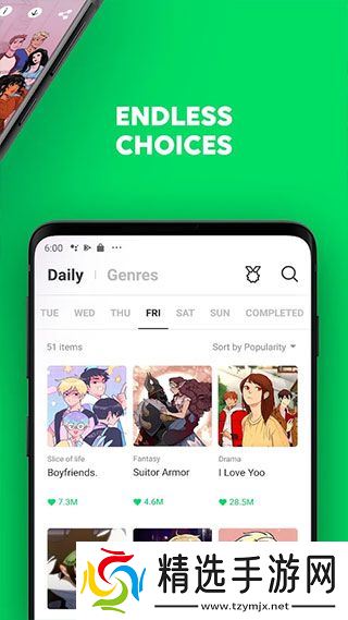 Webtoon 官网免费入口特点1.提供的免费漫画可以直接在手机或平板电脑上观看,无需下载其他电子书阅读器。下载漫画后,可以离线阅读30天,