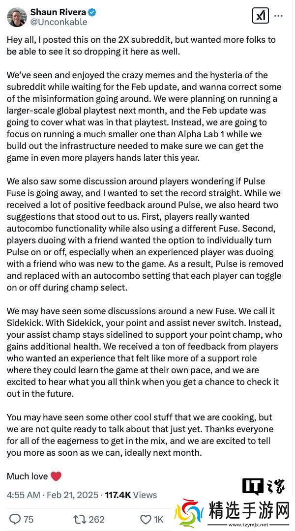 近日,拳头游戏公司的一则消息引起了《英雄联盟》粉丝们的关注。游戏总监Shaun Rivera在X平台上正式宣布,原计划在3月份展开的《英雄联盟》衍生格斗游戏《2XKO》的全球测试活动已被推迟。据他透露,开发团队正在紧锣密鼓地根据玩家反馈对游戏进行深度优化,以确保未来的游戏体验更加出色。