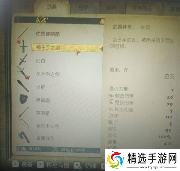 2、获取剑:刽子手之剑位于拉泰刽子手帐篷里的一个箱子中。你需要悄悄地从箱子里取出这把剑,并磨坏它后再放回去。虽然这把剑可以作为任务物品装备,但它首先需要通过任务完成后才能长期使用。