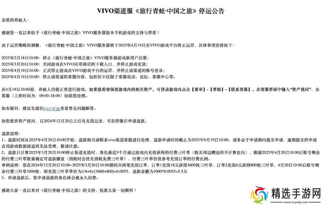 一款曾风靡一时的游戏《旅行青蛙·中国之旅》近日在其官方网站上发布了一则令人唏嘘的公告,宣布VIVO服务器将于4月19日正式停运。这一消息迅速在游戏玩家间引发了热议和怀旧之情。