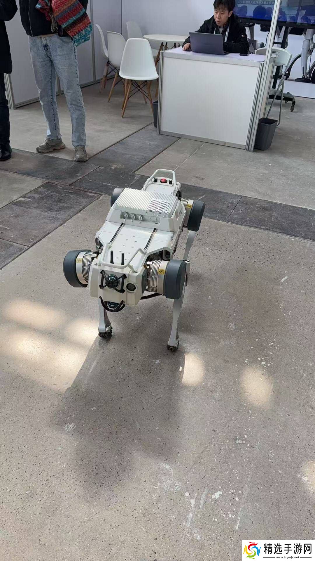 另一家知名的杭州机器人公司云深处也带来他们的四足机器人,甚至在现场表演起了“后空翻”。