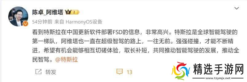 特斯拉FSD在华上线,阿维塔总裁陈卓期待切磋共促智能驾驶发展