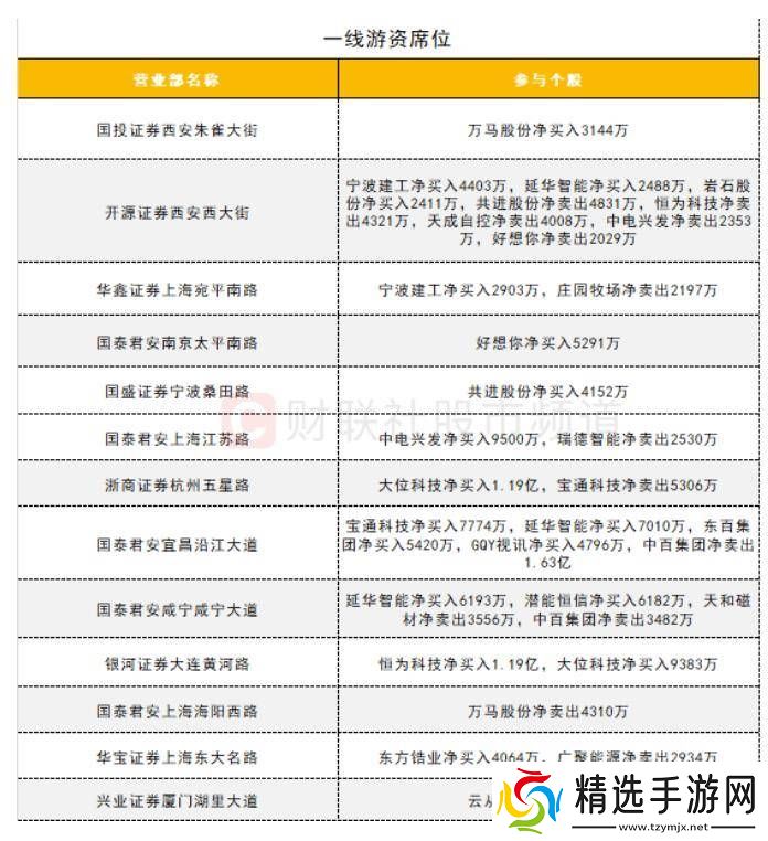 一线游资活跃度有所下降,算力概念股大位科技获两家一线游资席位合计买入2亿;一体机概念股恒为科技获银河证券大连黄河路营业部买入1.19亿;中百集团遭国泰君安宜昌沿江大道营业部卖出1.63亿。