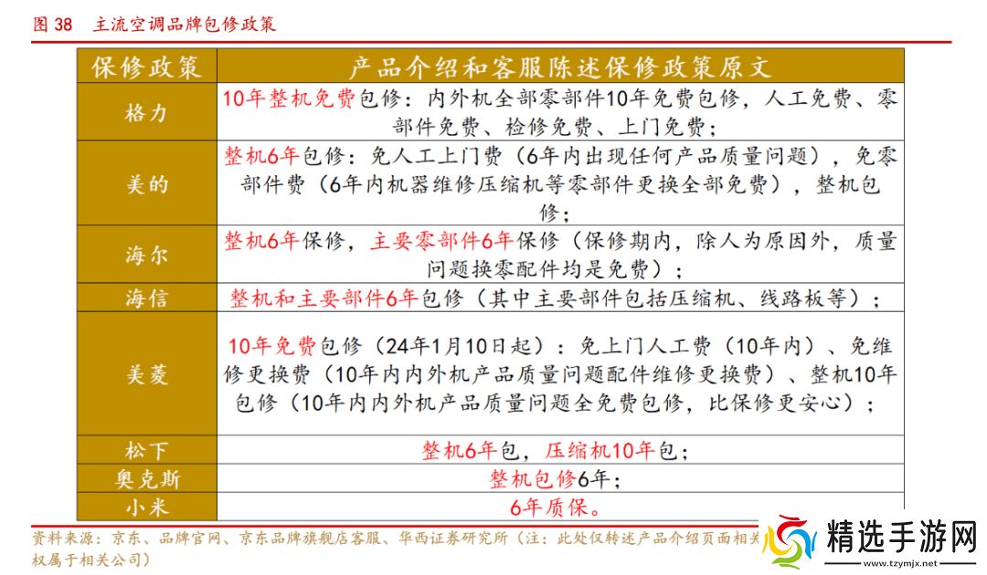 华西证券研究指出,从售后服务看,以空调产品的包修政策为例,主流家电品牌中只有格力、美菱是10年整机免费包修,也只有格力、美的、美菱是明确免人工上门费。