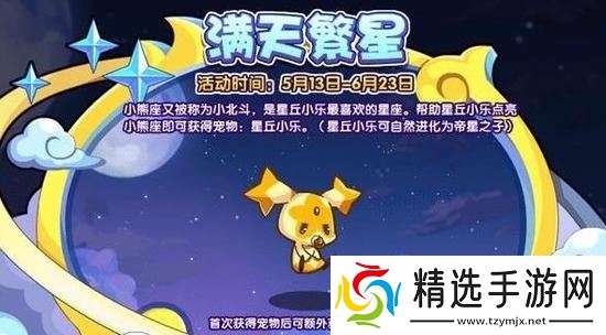 1、群星之力是需要玩家参与“满天繁星”活动,进行活动;2、玩家每日都有5次挑战机会,成功战胜星丘小乐即可获取;3、失败也不会消耗相应的次数,完成后进行点亮;4、是在相应界面随机点亮的哈,已经亮起来的不会再重复;5、小熊座所有的按键都已经点亮,即可完成活动获取宠物;6、活动时间是在5月13号至6月23号,随时体验。