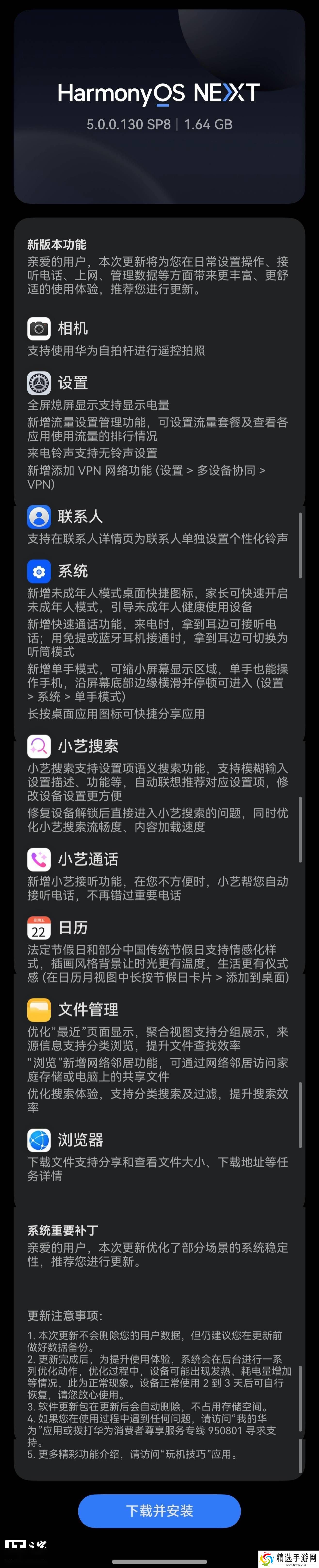 3 月 3 日消息,华为 Mate 70系列手机今日获鸿蒙 HarmonyOS NEXT 5.0.0.130 版本升级,系统包大小约 1.64GB,新增全屏熄屏显示支持显示电量、小艺接听等功能。