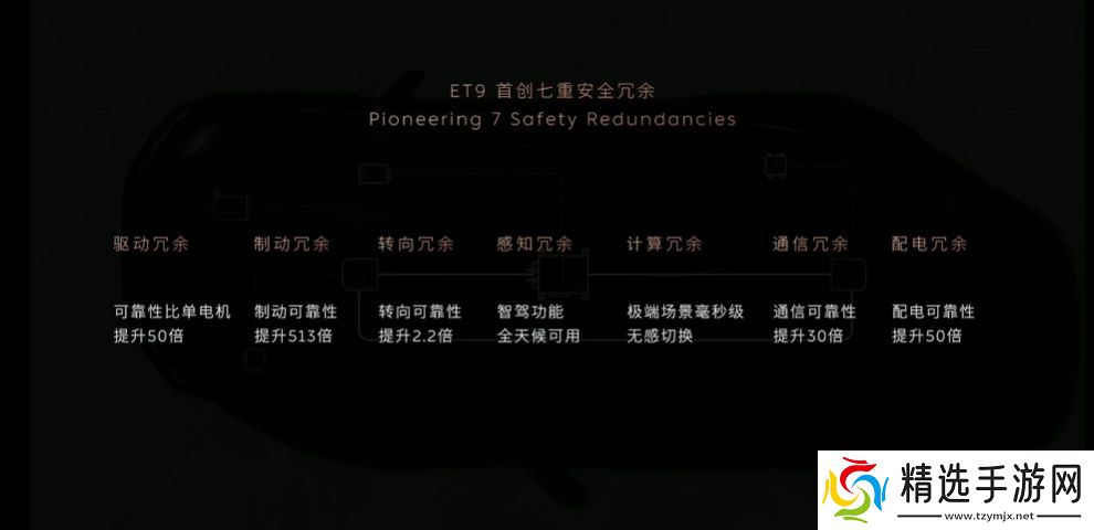 智能化方面,该车提供了 3 个激光雷达,形成 360° 无死角探测能力,官方称其最近能探测 10cm、最远能探测 150m。ET9 首发搭载两颗自研智驾芯片“神玑 NX9031”,采用5nm 车规工艺打造,拥有 500 亿 + 晶体管,支持 32 核 CPU。此外,该车内置的中央超算平台 2.0 支持智能驾驶、智能座舱、智能底盘、车身、动力、云域等 6 大板块的计算功能。