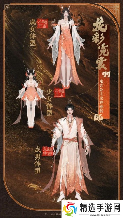 龙吉公主元神套装同步公布。道友与龙吉公主共鸣,并完成指定任务,即可免费获取下方对应体型的套装哦!