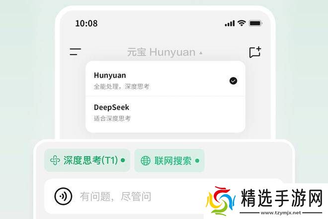 目前,元宝已经同时支持混元和DeepSeek两大模型。用户打开元宝并进入对话界面,可以选择使用DeepSeek-R1满血版模型或最新的混元深度思考模型T1。