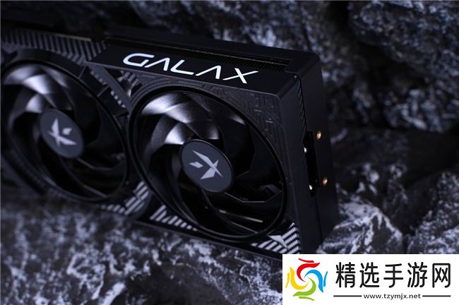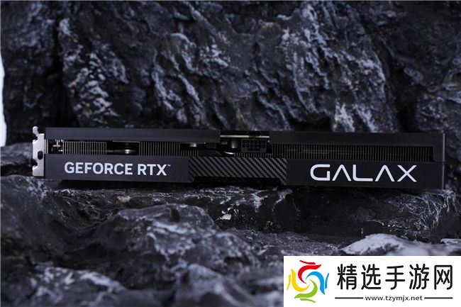 显卡侧面展示,影驰RTX 5070 FIRE是无ARGB灯效,侧面由GeForce RTX与影驰LOGO GALAX组成,中间采用碳纤维纹路进行分隔隔层。