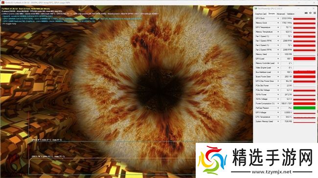 在furmark中进行烤机测试,在1080P测试满载10分钟,室温25度,开启机箱侧面板的状态下,显卡温度达到70.7°C,核心频率维持在2362MHz左右,显卡功耗为247.2W,接近250W。
