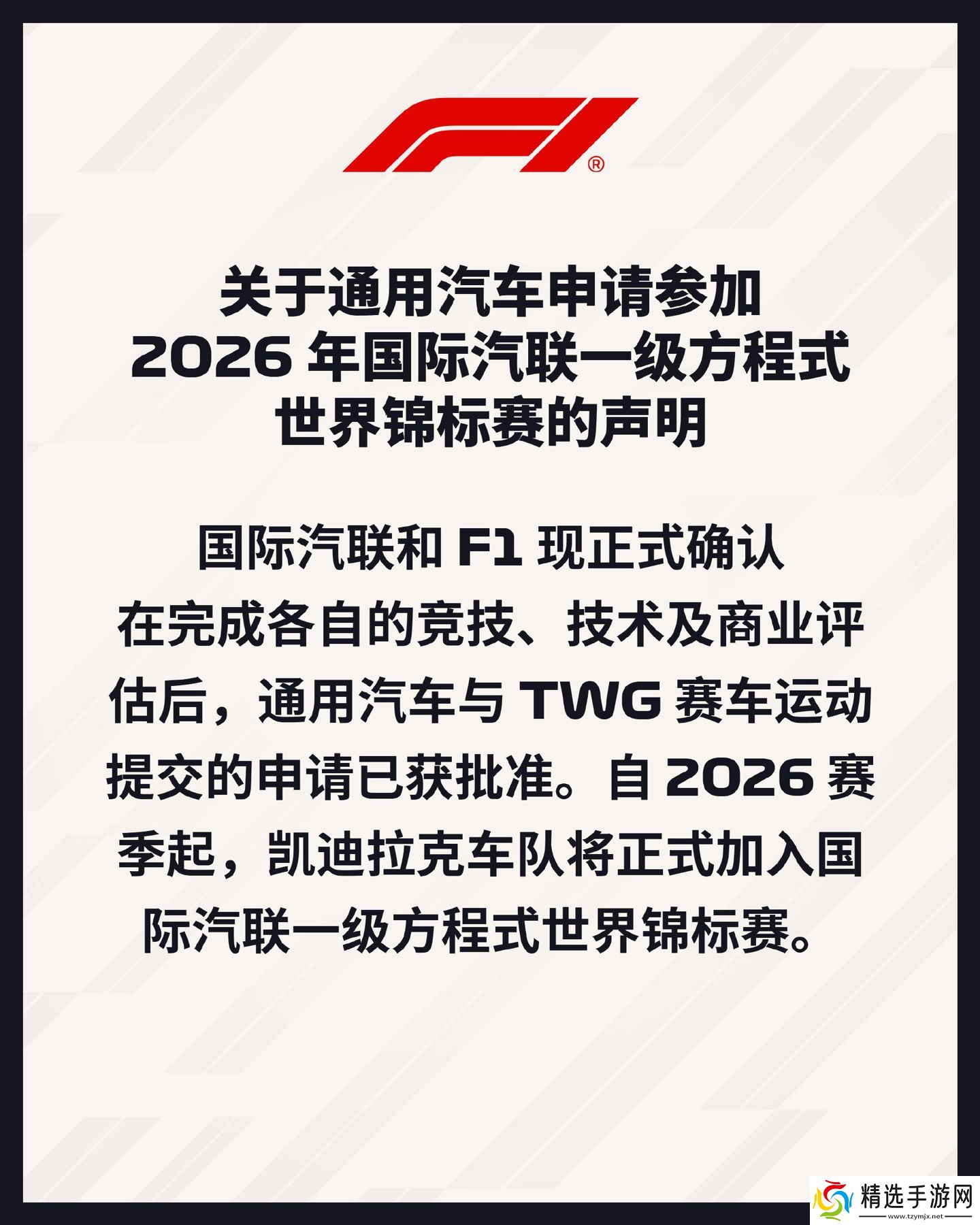 关于通用汽车申请参加 2026 年国际汽联一级方程式世界锦标赛的声明: