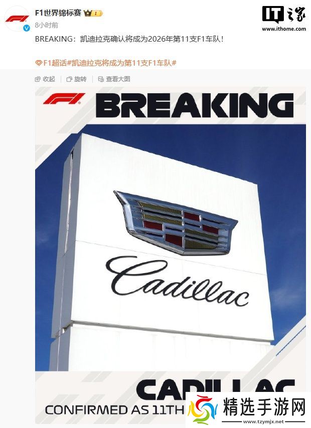 本站 3 月 8 日消息,F1 世界锦标赛今天凌晨官宣,凯迪拉克确认将成为 2026 年第 11 支 F1 车队。