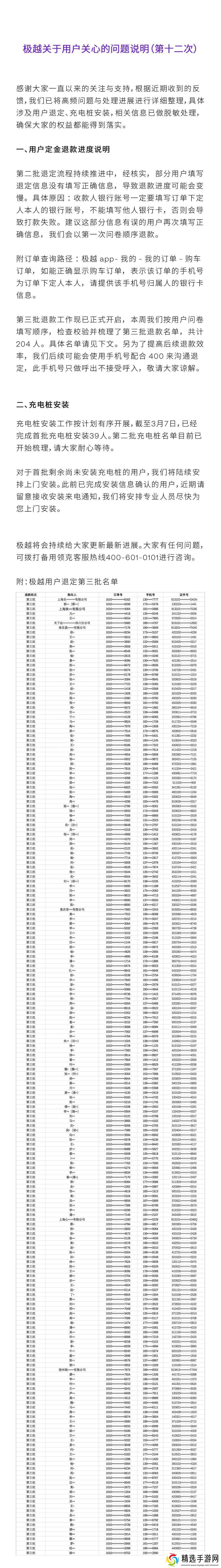 近日,极越公司针对用户关心的热点问题发布了第十二次说明,详细阐述了用户定金退款及充电桩安装的最新进展。