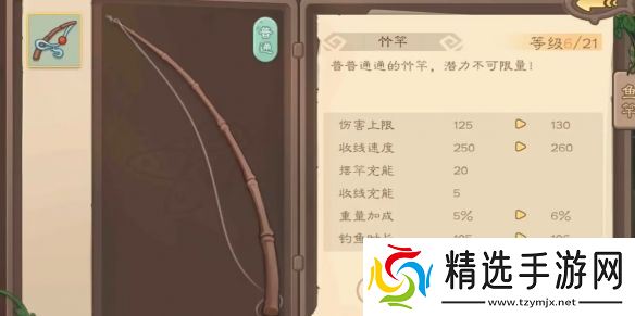 3、我们可以升级鱼竿至6级,进而增加鱼竿的伤害。