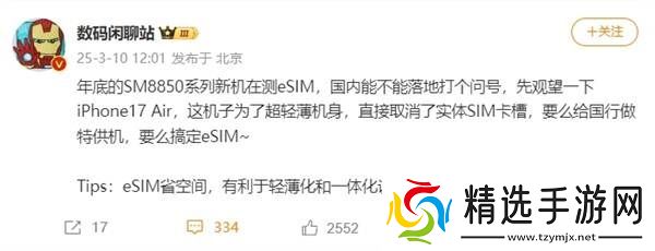 如果iPhone 17 Air国行版搞定eSIM,那么我们真的应该感谢苹果,这是如今苹果为数不多改变手机行业的事情了。