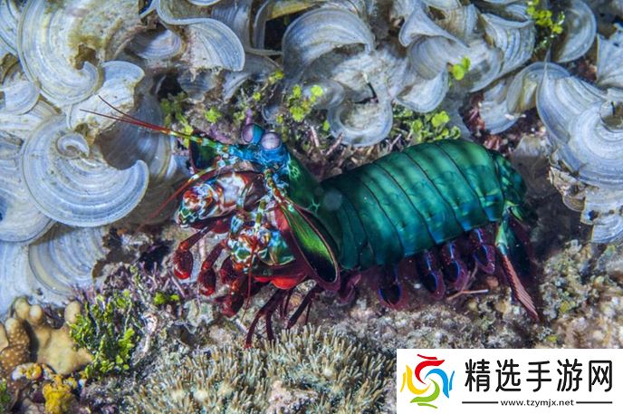 螳螂虾既不是螳螂,也不是虾,而是一种口足目动物。它们是首次出现于 4 亿年前的掠食性海洋甲壳类动物,以软体动物、鱼类、刺丝胞动物和其他甲壳类动物为食。它们捕食能力极强,例如,雀尾螳螂虾(Odontodactylus scyllarus)在它栖息的热带浅滩便属于最“凶猛”的掠食者之一。