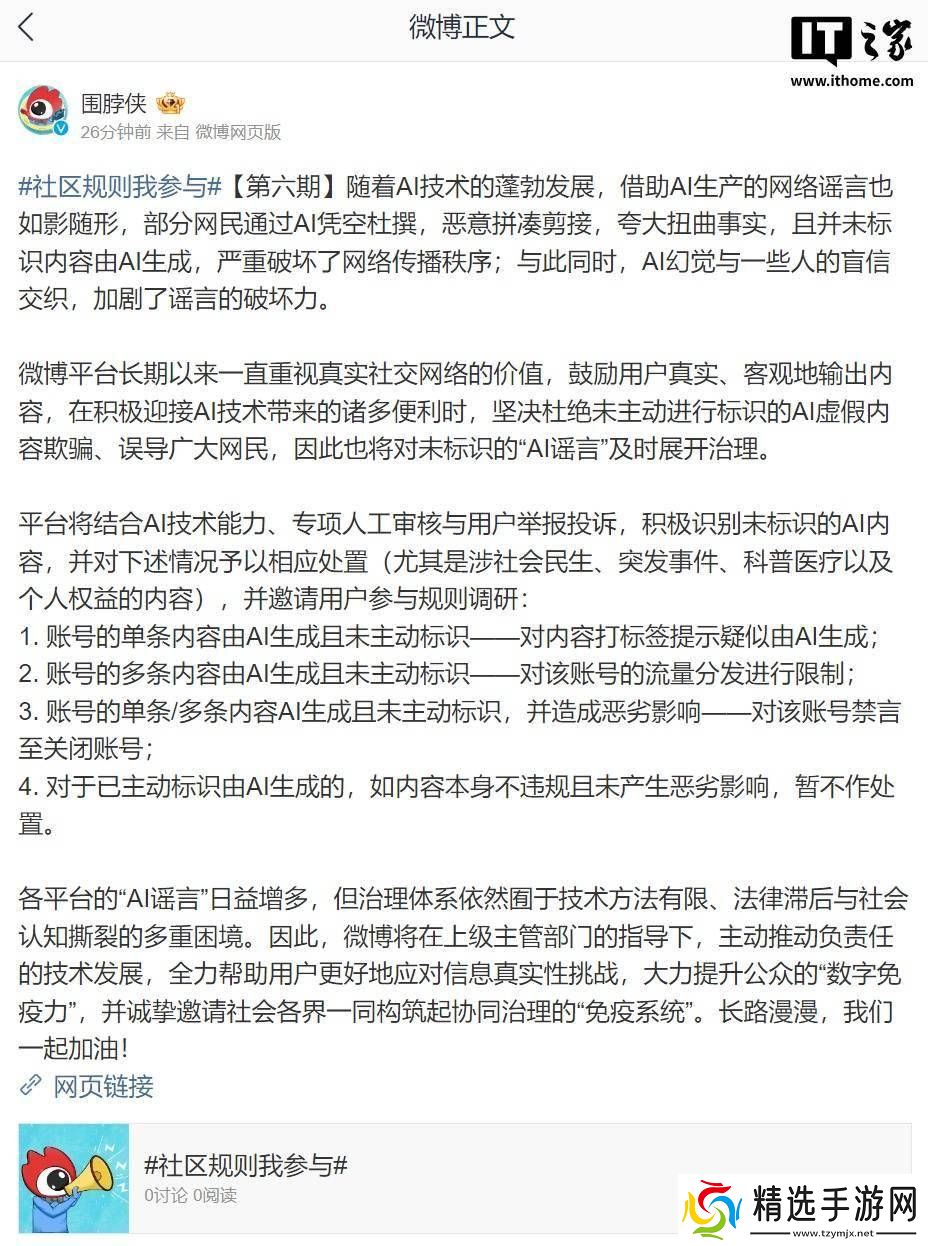 微博社区观察员近日宣布,将着手治理未标注的“AI谣言”,旨在提升平台信息的真实性和透明度。