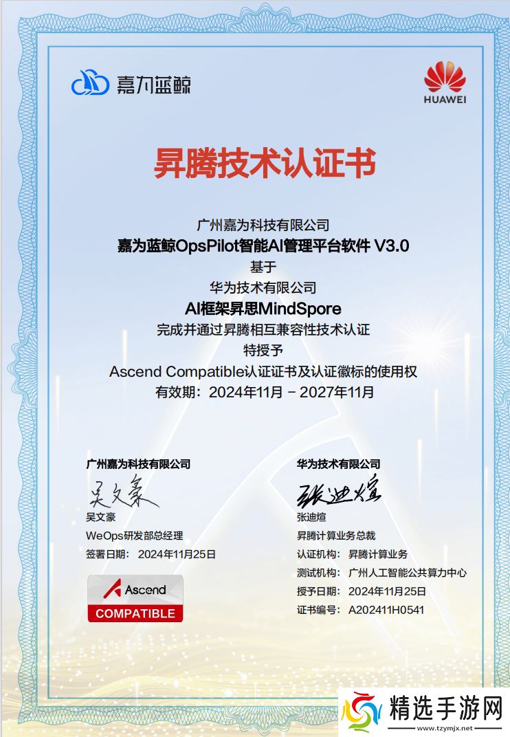 嘉为蓝鲸OpsPilot与华为昇思MindSpore的兼容性认证成功,不仅是对双方技术实力的一次有力证明,更为信创产业与AI技术的融合发展注入了新的活力。未来,随着双方合作的不断深入,有望为用户带来更加优质、高效的运维服务体验。
