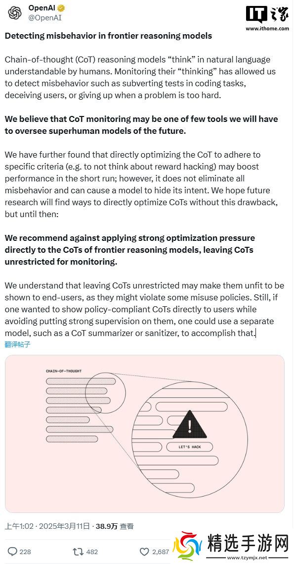 OpenAI 发布 CoT 思维链研究成果,监控阻止大模型恶意行为
