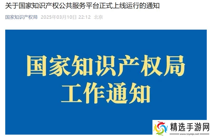 本站 3 月 11 日消息,国家知识产权局昨日晚发布《关于国家知识产权公共服务平台正式上线运行的通知》,平台定于2025 年 3 月 10 日正式上线。