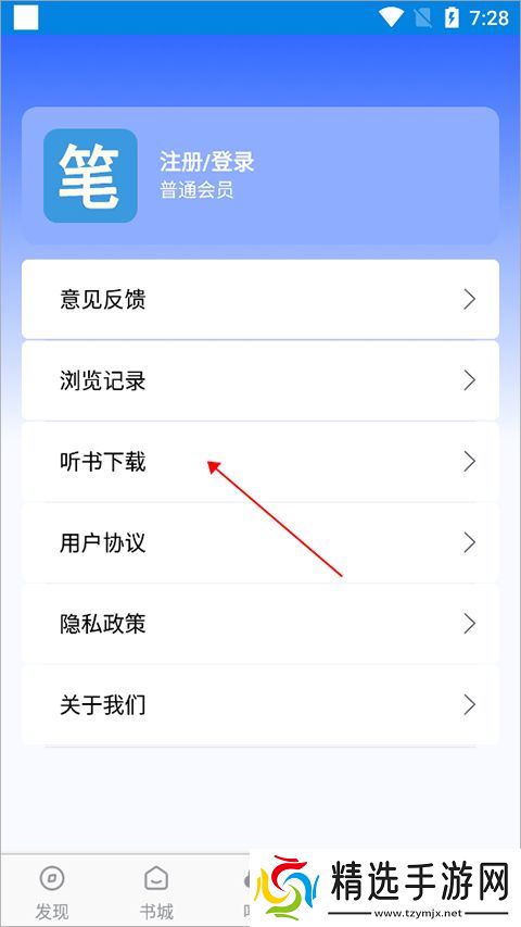 笔趣阁软件怎么缓存小说1、用户打开并登录笔趣阁app后进入【听书】页面中选择一本小说点击。