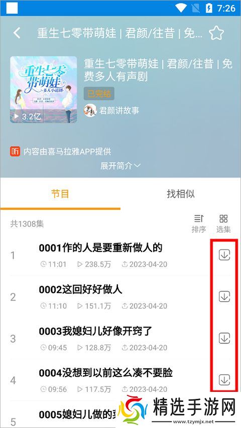 2、在打开的小说详情页面中点击需要下载的小说章节右侧的下载按钮。(下图红色方框处)
