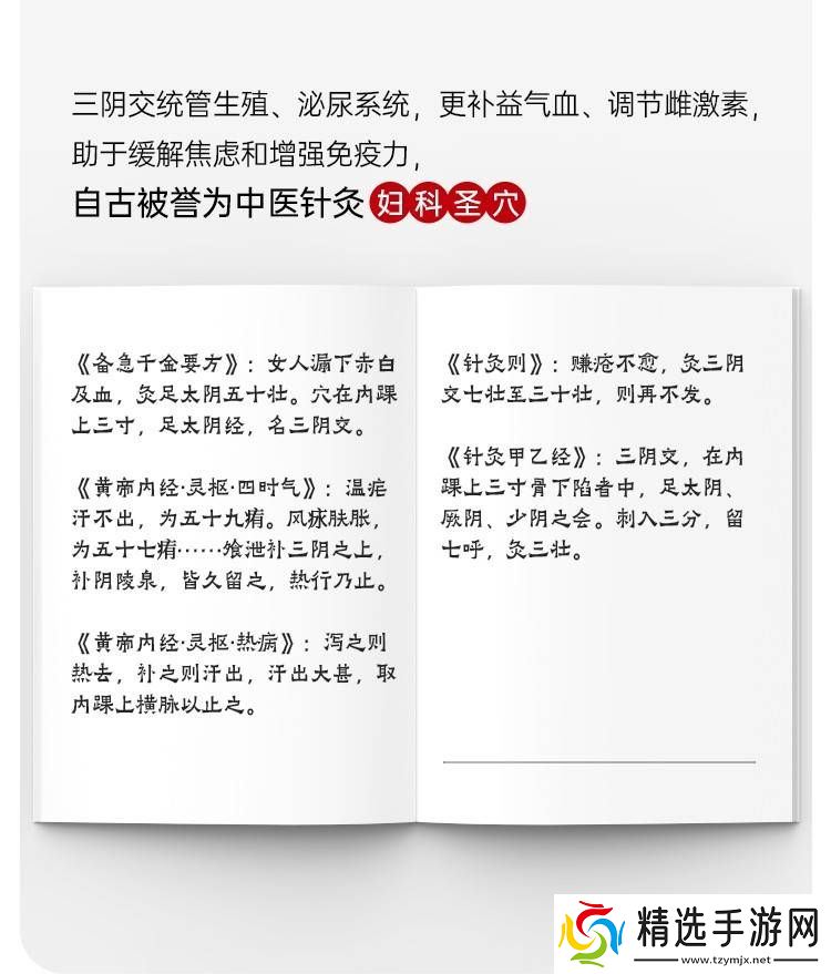 在中医的经络理论中,三阴交穴是调节女性经期不适的重要穴位之一。它位于小腿内侧,当足内踝尖上3寸处,是足太阴脾经、足少阴肾经和足厥阴肝经三条阴经的交会点。这三条经脉分别与女性的**系统、内分泌系统和情绪调节密切相关。