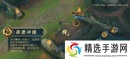 波比的战场艺术在于对地形的极致运用,E(3)技能:英勇冲锋接Q(1)技能:圣锤猛击的连招可瞬间造成大量伤害,W(2)技能:坚定风采能完美克制刺客突进。