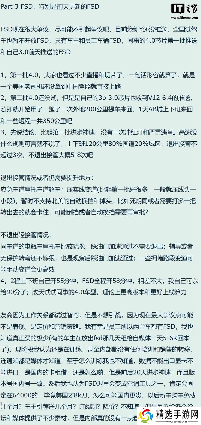 对于新版本的表现,这位网友给予了正面评价,指出相较于首个版本,第二个版本在驾驶过程中未出现闯红灯或严重违章行为。他分享了自己的使用体验:“在每天上下班的120公里路程中,包括80%的国道和20%的城区道路,我主动接管驾驶的次数不超过3次,而无需接管的情况则大约在5到8次之间。”